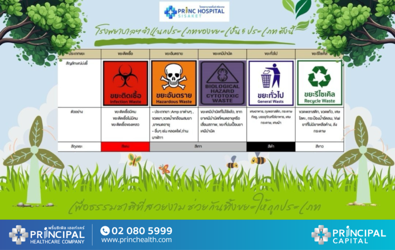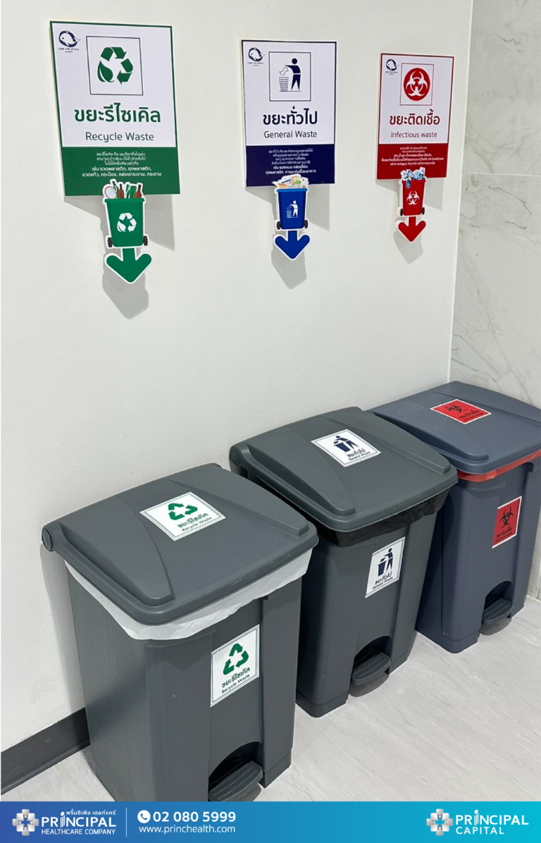 โรงพยาบาลพริ้นซ์ ศรีสะเกษ ในเครือพริ้นซิเพิล เฮลท์แคร์ และ บมจ.พริ้นซิเพิล แคปิตอล หรือ PRINC จัดตั้งจุดคัดแยกขยะภายในโรงพยาบาล พร้อมป้าย Pop up สำหรับบ่งชี้ประเภทขยะ ให้ป้ายดูมีความน่าสนใจ เป็นที่สังเกต สามารถอ่านรายละเอียดได้อย่างชัดเจน ช่วยลดความสับสนให้พนักงานและทำให้พนักงานทิ้งขยะได้ถูกประเภทมากยิ่งขึ้น